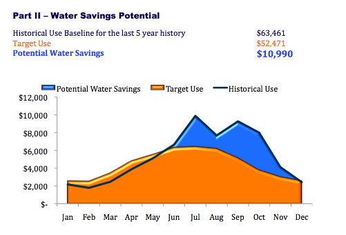 1. Water Comparison- We establish an outdoor water budget for the entire site. Comparing your historical average water use to the budget will reveal the potential savings in water and dollars. Having this information is important to making decisions about upgrades.